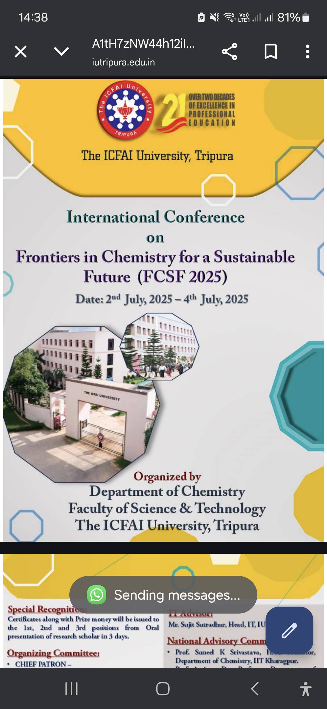 Invited Speaker in the International Conference, organized by the Department of Chemistry, ICFAI University, Tripura, July 04, 2025
