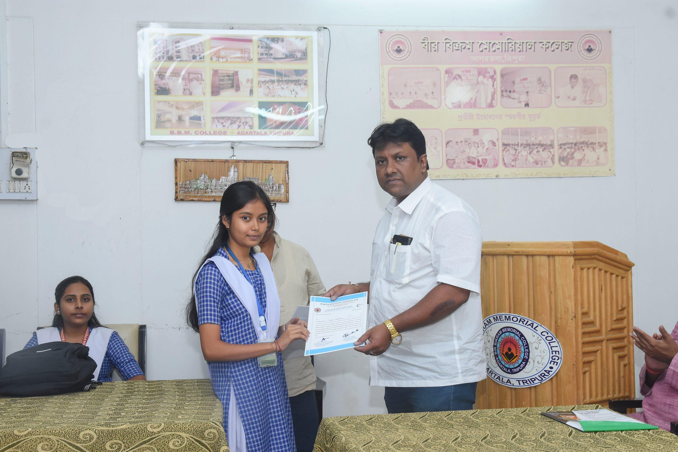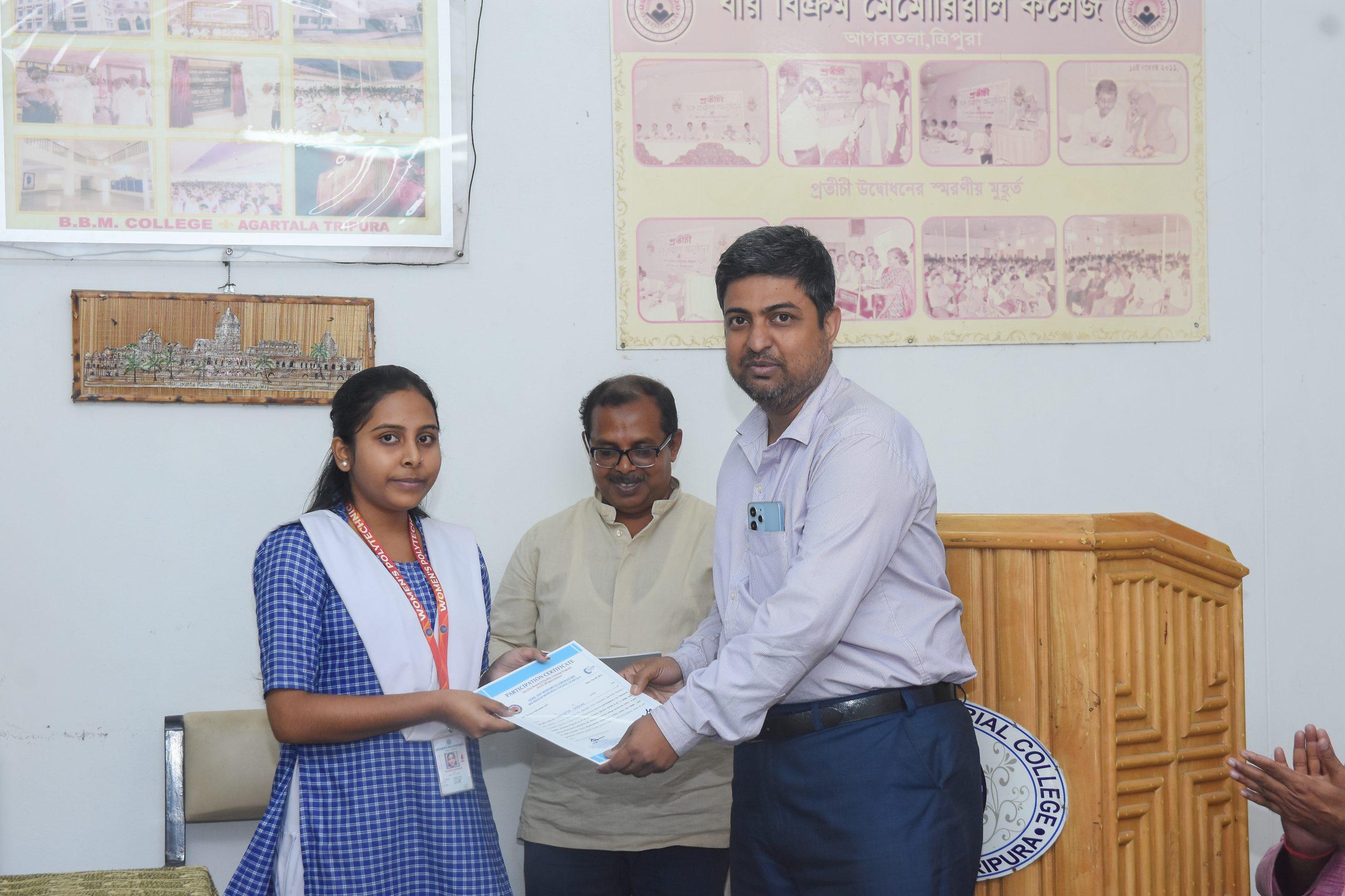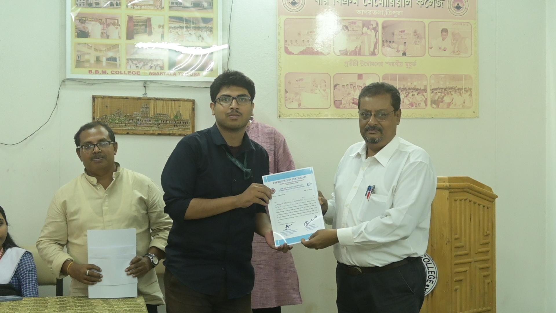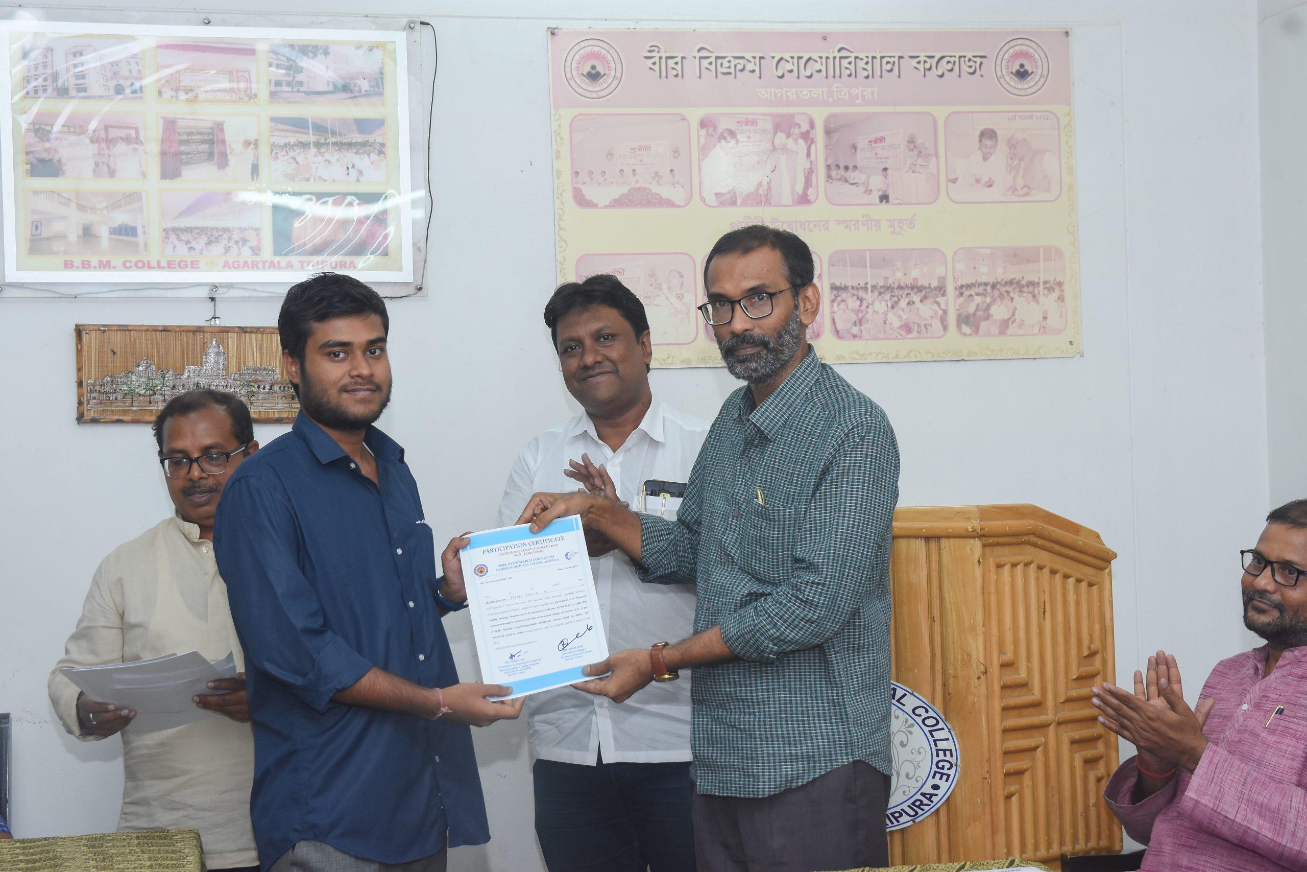 Popular Science Lecture on ‘Know your brain & impact of smoking on brain’ organized by the Science Forum, BBMC in collaboration with SERB, DST Project, BBMC, Govt. of India, New Delhi. Shri Debashis Chakraborty (Retd. IFS), Chairman of Bhavan’s Tripura Vidyamnadir, and Dr. Chandan Raybarman, D.M.(Neurology) were present as resource persons.
