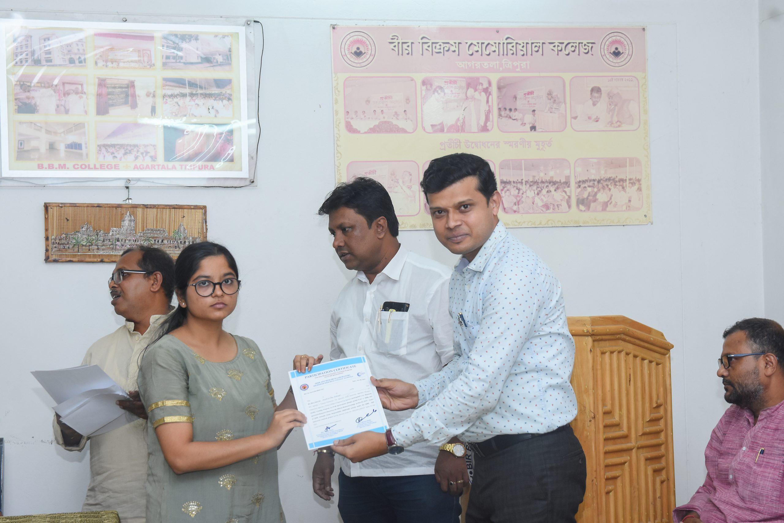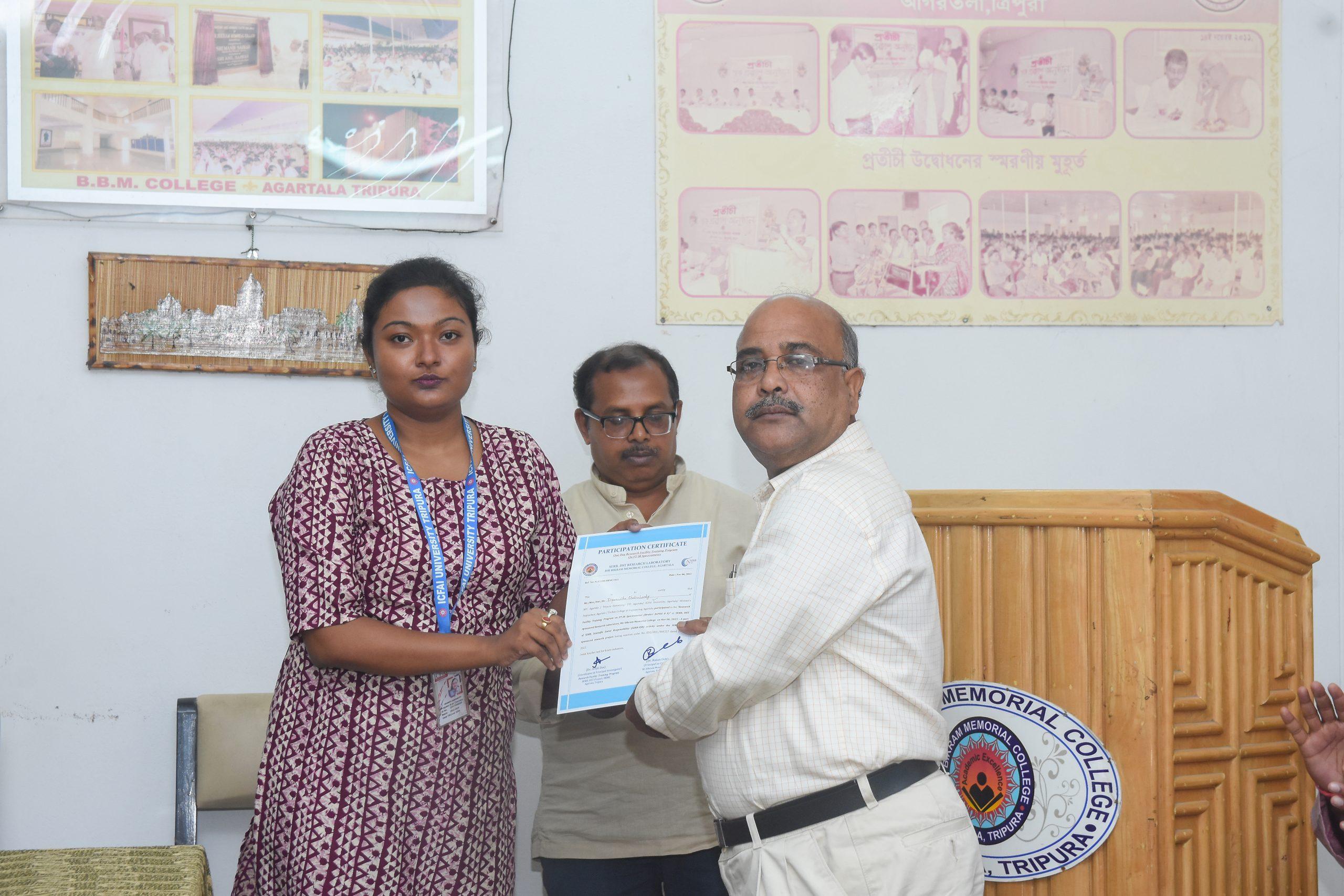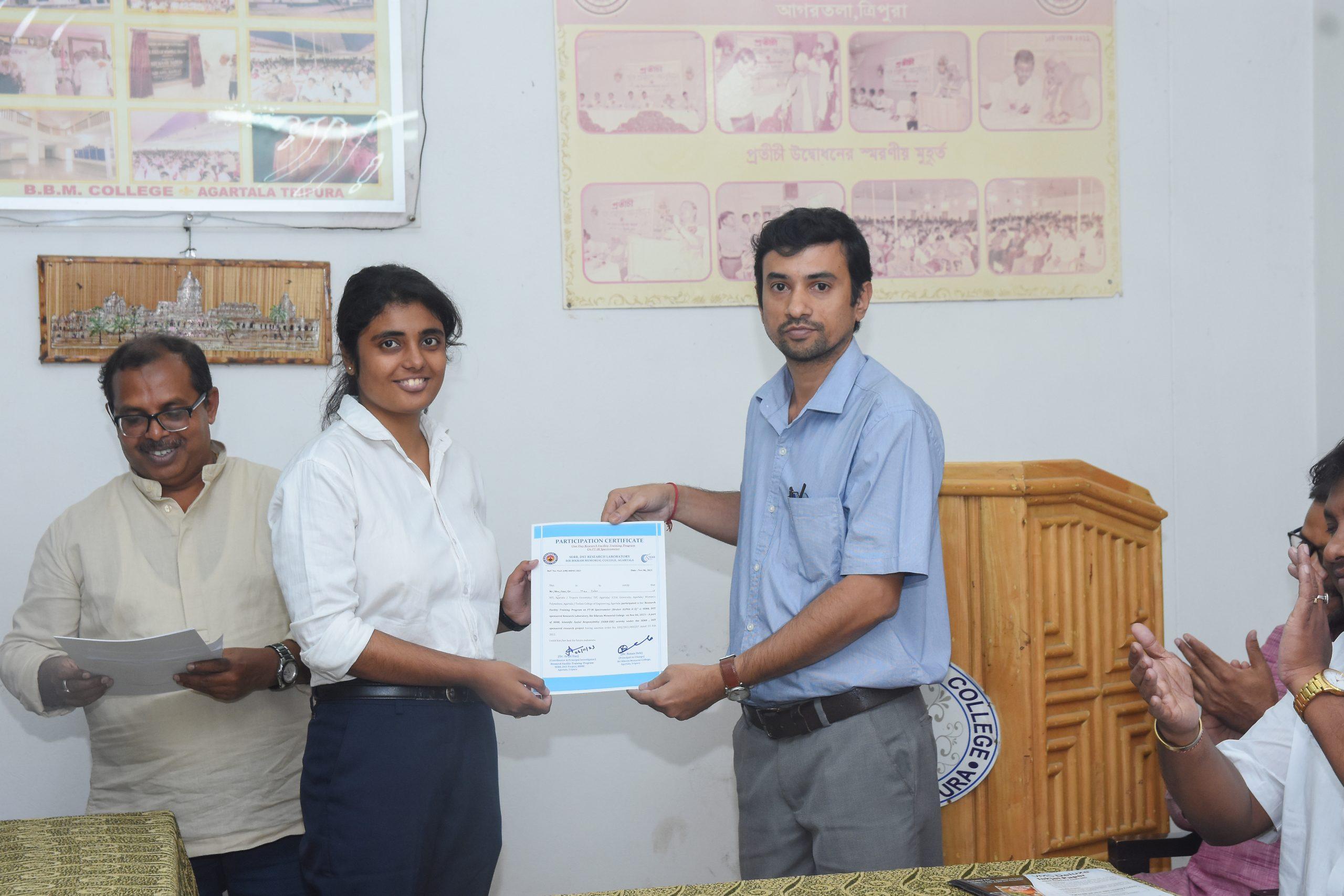 Felicitation with Certificate of honor on 14th July 2019 at the Faculty Development Centre (FDC), Tripura University