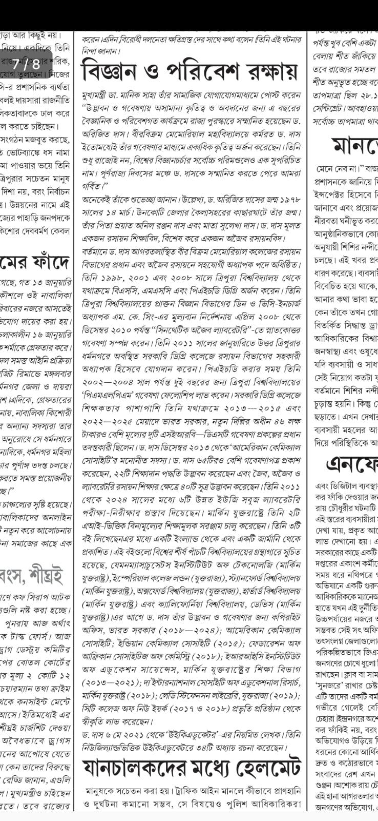 Received ‘State Civil Award for Scientific and Environmental Activity’ from the Govt. Of Tripura dated Jan 21, 2026 in the occasion of Statehood Day celebration of Tripura Jan 21, 2026
